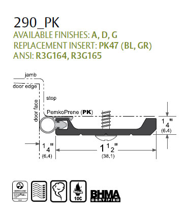 Pemko 290APK 84" Heavy-Duty Perimeter Gasketing with Gray Pemko Prene insert - Mill Finish Aluminum