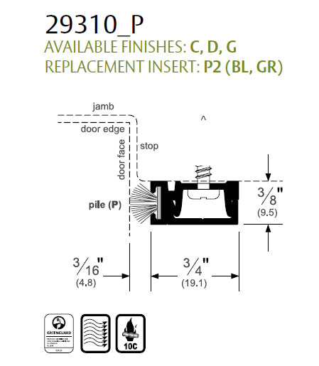 Pemko 29310DP 54" Snap Cover Perimeter Gasketing / Split Astragal - Black Pile insert - Dark Bronze Anodized Aluminum