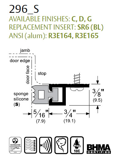 Pemko 296DS 84" Standard Perimeter Gasketing with Black Sponge Silicone insert - Dark Bronze Anodized Aluminum