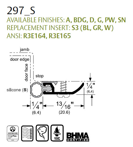 Pemko 297AS 82" Astragal/Perimeter Gasketing with Black Silicone insert - Mill Finish Aluminum