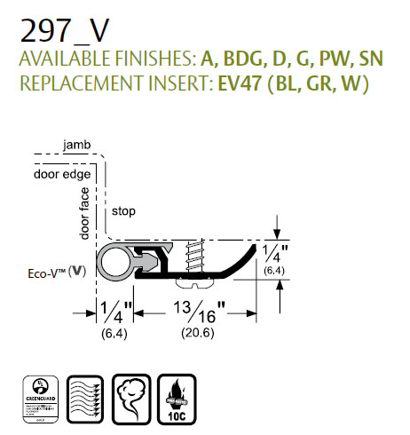 Pemko 297GV 72" Astragal/Perimeter Gasketing with Black Vinyl insert - Gold Anodized Aluminum