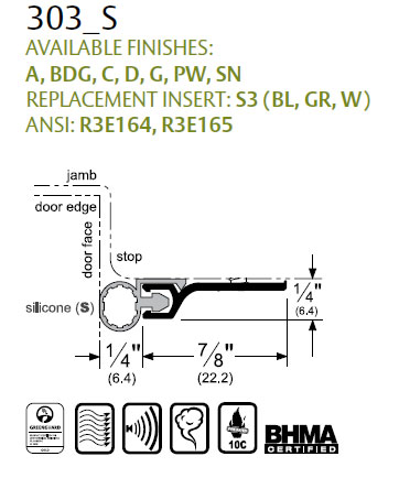 Pemko 303CSTST 36" Self-adhesive Astragal/Perimeter Gasketing with Black Silicone insert - Clear Anodized Aluminum