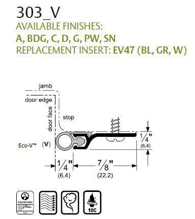 Pemko 303CV 44" Astragal/Perimeter Seal with Gray Vinyl insert - Clear Anodized Aluminum
