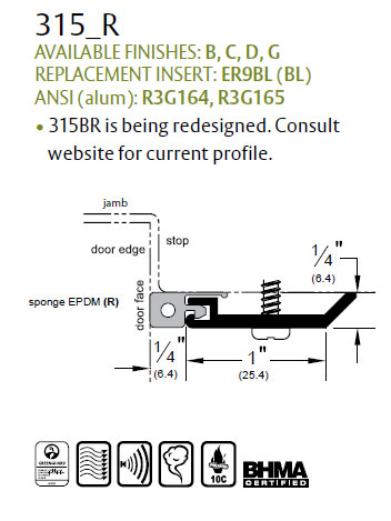 Pemko 315CR 36" Standard Perimeter Gasketing with Black Sponge Neoprene insert - Clear Anodized Aluminum