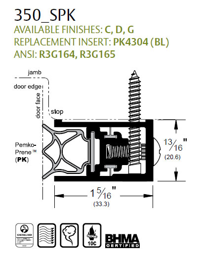 Pemko 350CSPK 80" Adjustable Jamb Weatherstrip with Black Pemko Prene insert - Clear Anodized Aluminum