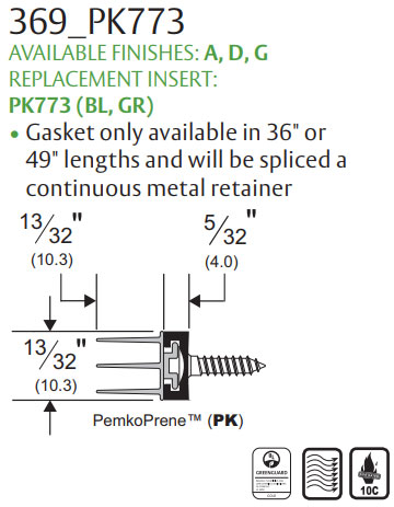 Pemko 369APK773 40" Meeting Stile Gasketing with PemkoPrene Insert - Mill Finish Aluminum
