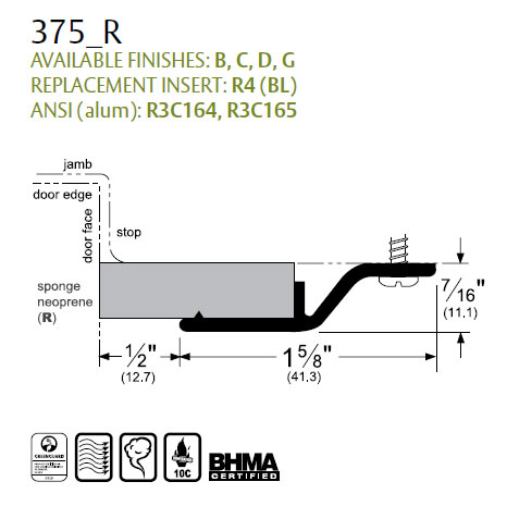 Pemko 375CR 96" Astragal/Perimeter Gasketing with Black Sponge Neoprene insert - Clear Anodized Aluminum