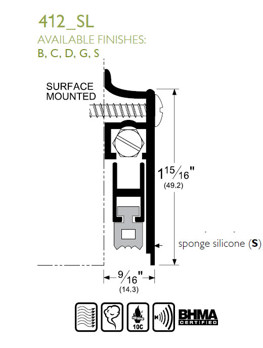 Pemko 412SSL 36" Automatic Door Bottom with Sponge Silicone insert - Cladded Stainless Steel - Surface Mount