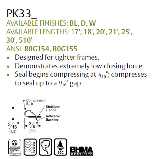 Pemko PK33BL 25 Adhesive-Backed Fire/Smoke Gasketing - Black - 25 length