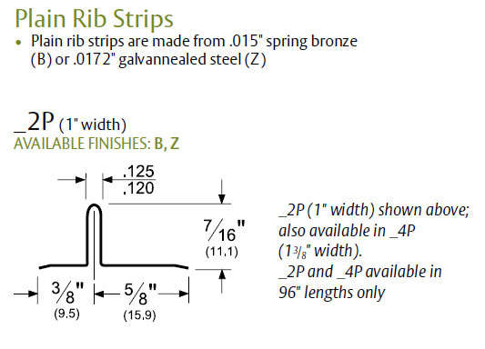 Pemko Z2P 96 Interlock Plain Rib Weatherstrip For Wood Windows - Zinc - 96" length
