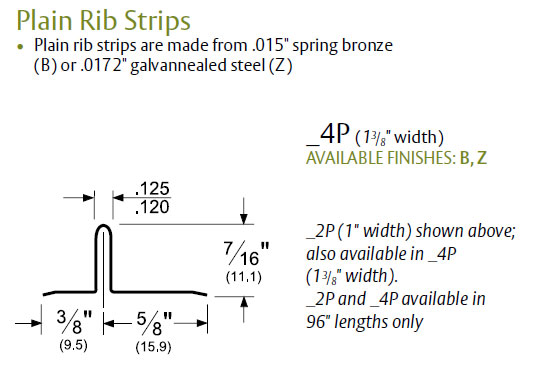 Pemko Z4P 96 Interlock Plain Rib Weatherstrip For Wood Windows - Zinc - 96" length