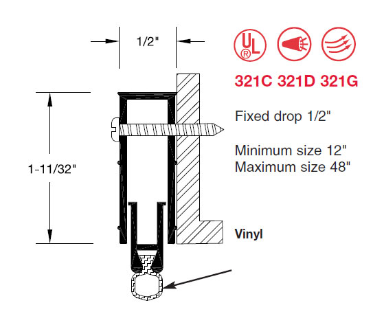 Automatic Door Bottom with Vinyl insert, Length: 32", Width: 1/2", Height: 1-11/32", Material: Clear Anodized Aluminum Surface Mount