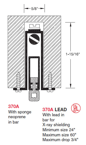 • Automatic door bottoms: 18" to 24" cannot be trimmed. 36", 42" and 48" can be trimmed up to 3". Other sizes can be trimmed up to 1". Part 370 can be trimmed up to 2" in all sizes.