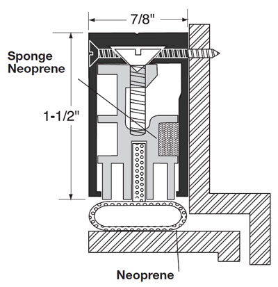 Automatic Door Bottom with Sponge Neoprene and Pile Seal insert, Length: 36", Width: 7/8", Height: 2-1/2", Material: Clear Anodized Aluminum Surface Mount