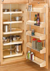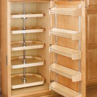 Rev-A-Shelf 4265 Series Lazy Susan have 5 D-shaped shelves that are 22" in diameter, independently rotate and are constructed of 5/8" thick high density multi plywood with 1" solid maple wood rims
