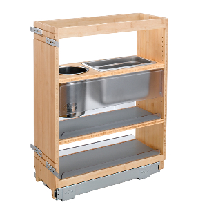 Rev-A-Shelf RS445-VCG25SC-8 8" Vanity Base Cabinet Organizer With Stainless Steel Bins, Soft-Closing - Wood Finish