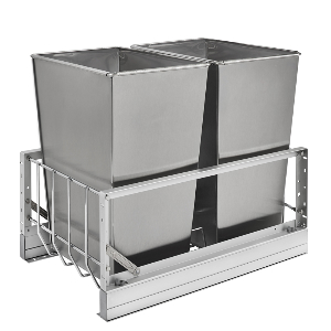 Rev-A-Shelf RS5349-18DM-217 Bottom Mount Double Trash Pull-Out, Heavy-Duty Soft-Close Slides, 2 x 35 QT - Silver Color