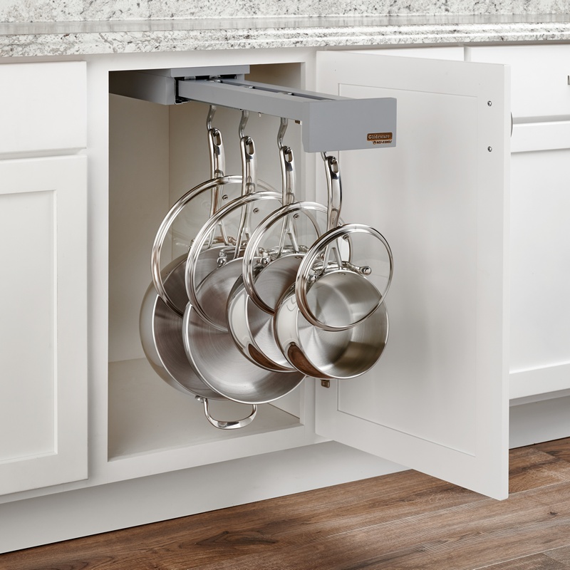 Rev-A-Shelf RSGLD-W22-BG-7 Pan/Utility Organizer, Blum Soft-Close Slides, 7 Hooks - Gray Finish
