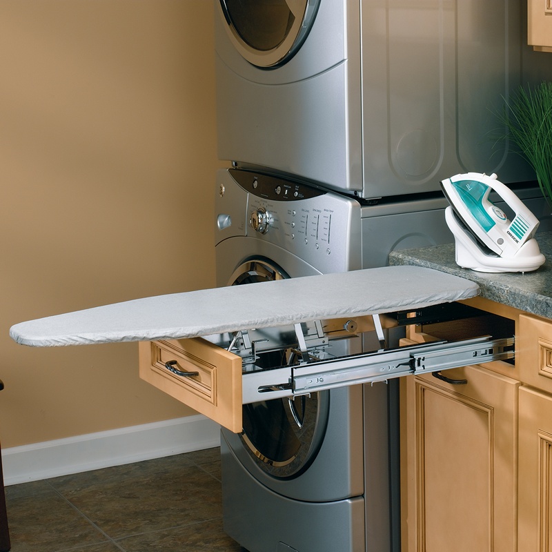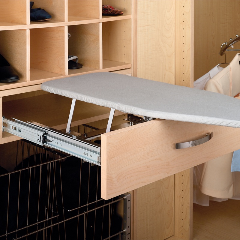 Rev-A-Shelf's closet drawer pullout ironing board features a board that fully extends to 29" long and 12" wide