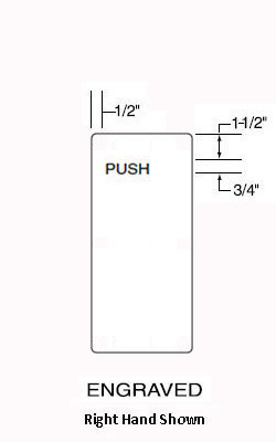 Engraving: "PUSH"- 3/4" high condensed block letters with black enamel fill. Other letter heights are available. Please specify letter height and location, if not the standard engraving type will be shipped.
