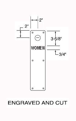 Engraving: "WOMEN"- 3/4" high condensed block letters with black enamel fill. Other letter heights are available. Please specify letter height and location, if not the standard engraving type will be shipped.