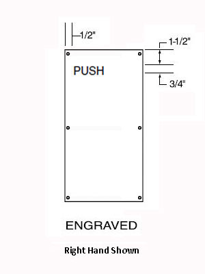 Engraving: "PUSH"- 3/4" high condensed block letters with black enamel fill. Other letter heights are available. Please specify letter height and location, if not the standard engraving type will be shipped.