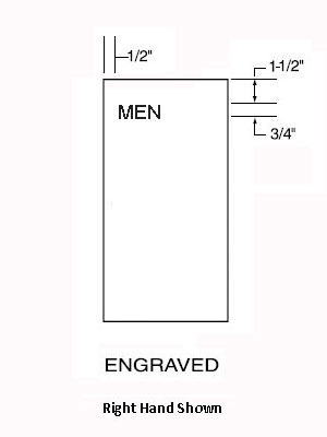 Engraving: "MEN"- 3/4" high condensed block letters with black enamel fill. Other letter heights are available. Please specify letter height and location, if not the standard engraving type will be shipped.