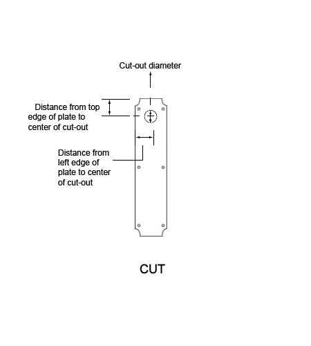 Cutout type: Turn for Knob Cutout - standard Turn for Knob cutout diameter is 3/8". Please specify cutout diameter and location on plate.