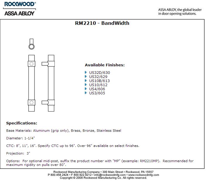 MezzoTek pulls appear to float on necked posts yet are made with Rockwood's unique sturdy construction. Available in most architectural finishes in 1-1/4" and 1-1/2" diameter pulls and push bars. Full height pulls are available as well. Our popular GripZone contrasting finish is available as shown in the drawings and detail photograph.