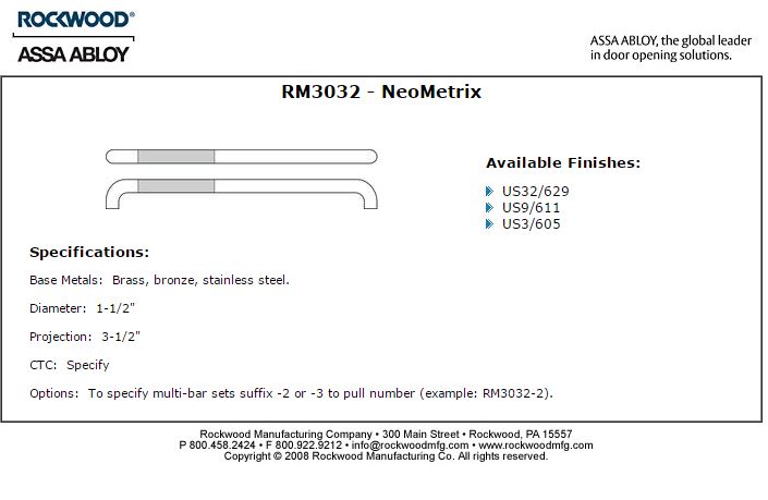 The NeoMetrix line features GripZone - a satin finished grip area contrasting to the bright mirror finish at the ends. Not only visually appealing, this winning design is practical as well. The satin finish hides small marks and scratches caused by rings, jewelry, and keys. On push bars, the GripZone identifies which side of the door swings open.