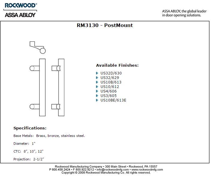 Post mounted pulls are smart clean designs for all kinds of doors. Offset mounting bases allow this group to be used on narrow style doors. Made to order sizes are affordably available. The simplicity of this group is an attribute that adds a bit of contemporary beauty to even standard entrance doors. See the price list for push pull sets.