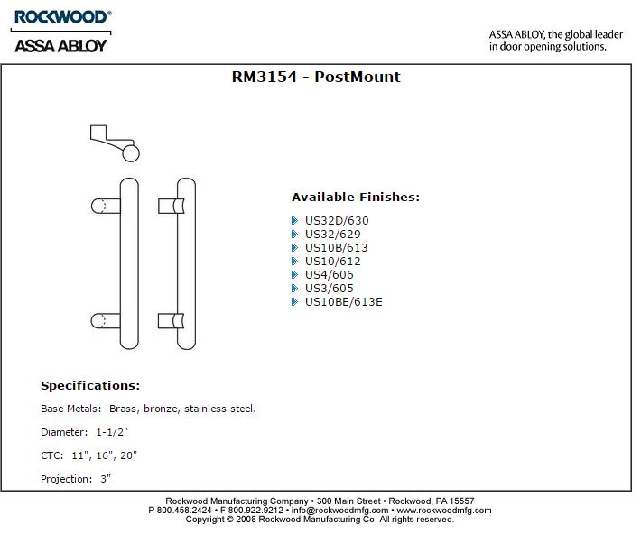 Post mounted pulls are smart clean designs for all kinds of doors. Offset mounting bases allow this group to be used on narrow style doors. Made to order sizes are affordably available. The simplicity of this group is an attribute that adds a bit of contemporary beauty to even standard entrance doors. See the price list for push pull sets.