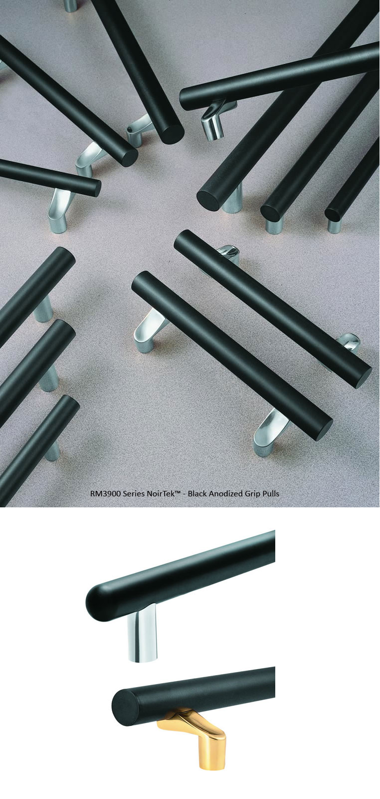 NoirTek pulls will stand out on light colored entrances for a quick identity and unrivaled statement. Durable black hard coat anodized grips will compliment many design schemes and are an appealing finish on their own. Choose from an array of contrasting finishes for the mounting posts. Available in 3 diameters and a variety of lengths.
