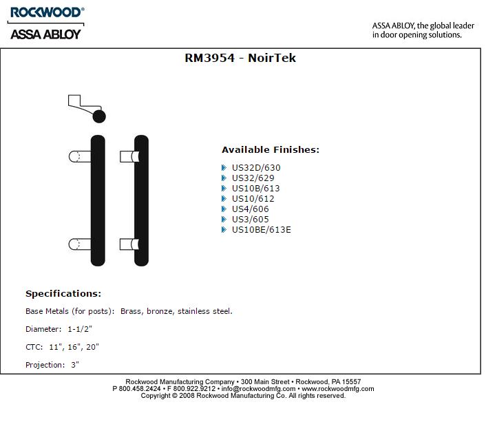 Rockwood RM3954-16-10BE Offset Round Ends NoirTek™ Black Anod. Pull Bar - 16" CTC - Dark Oxidized Satin Bronze, Equiv.