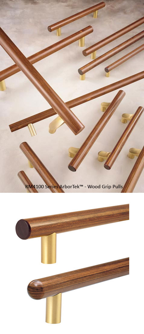 ArborTek pulls and push bars are offered in a variety of wood species including some exotics to compliment and elegant entrance. Just as in nature, each has its unique markings and tone. Solid brass and stainless steel mounting posts provide attachment strength and a simple contrast. Available in three diameters and a variety of lengths.