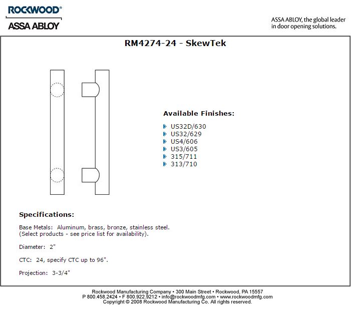 Rockwood RM4274-30-628 Straight SkewTek™ - Big Pull with Round Posts - 30" CTC - Clear Anodized Aluminum
