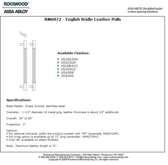 Note: All long pulls include charge for leather between mounting posts up to a maximum of 72" of leather cover.