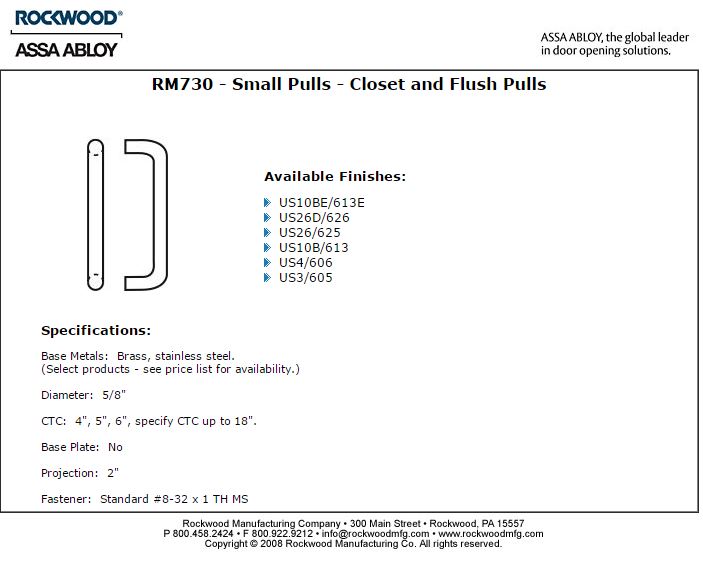 Our small pulls are made from larger diameter rod than commonly available "wire" pulls. A range of finishes and sizes is available or made to order. Our cast flush pulls are an attractive solution where protruding pulls are not desired.
