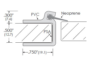 Length: 36", .750" Width, Material: PVC, Insert: Neoprene Lip, Self-adhesive, for .500" thick glass