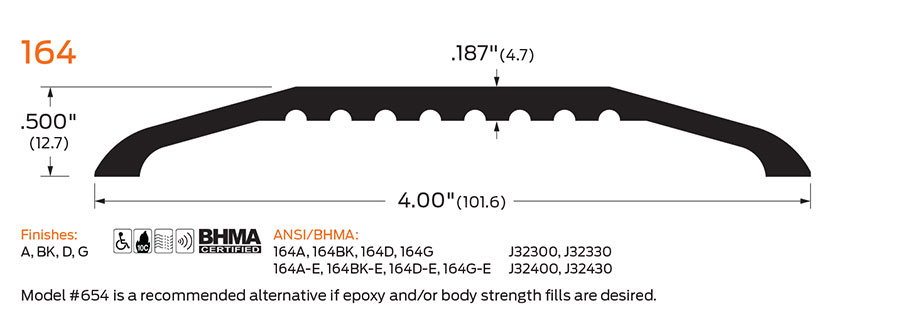 Zero 164G 42" Saddle Threshold without supporting legs, 4"W x 1/2"H, 42" Length, Gold Anodized Aluminum