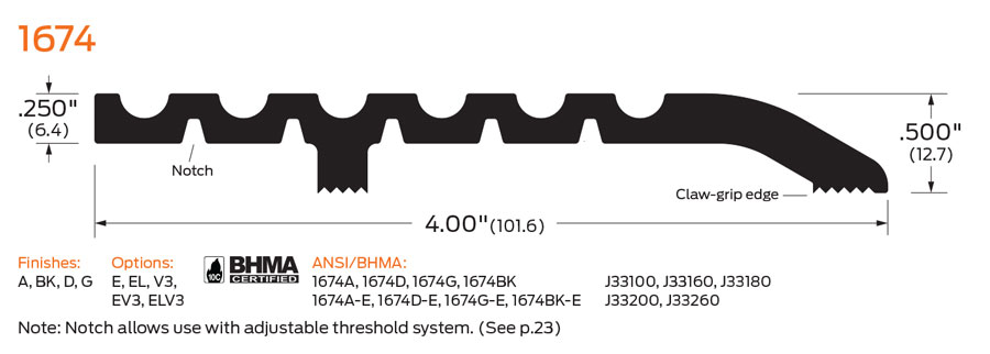 Zero 1674G 96" Half-Saddle Threshold , 4"W x 1/2"H, 96" Length, Gold Anodized Aluminum