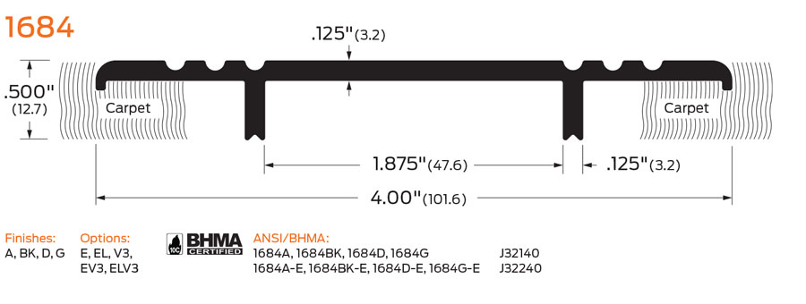 Zero 1684G 56" Thermal break threshold , 4"W x .500"H, 56" Length, Gold Anodized Aluminum