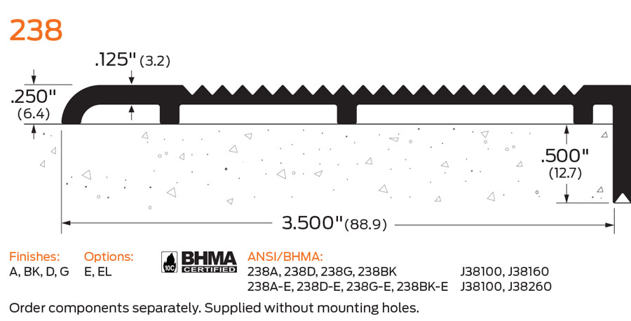 Zero 238BK 96" Ramp , 3.5"W x .500"H, 96" Length, Black Anodized Aluminum