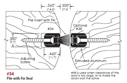 Length: 24", Finish: Gold Anodized, Mortised Astragal with Polypropylene Pile with Fin Insert