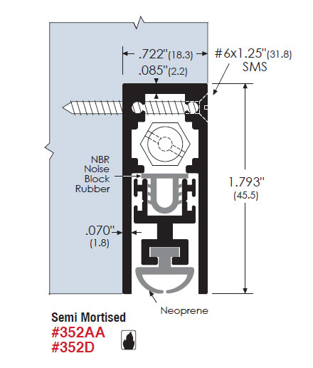 All ZERO automatic door bottoms function the same way. The concealed spring mechanism causes the insert seal to activate on the hinge side first. It prevents the seal from dragging along the floor or threshold while the door is being closed to avoid door hang-up or closing delay.