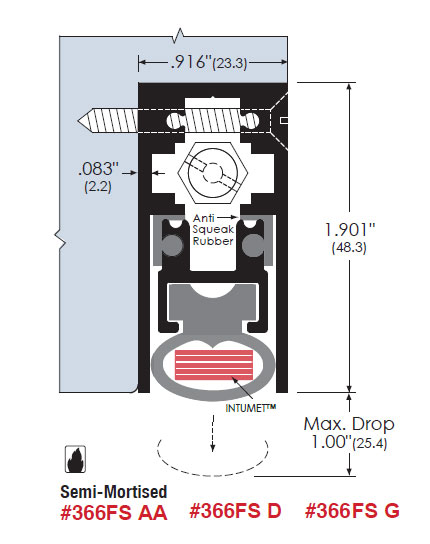 All ZERO automatic door bottoms function the same way. The concealed spring mechanism causes the insert seal to activate on the hinge side first. It prevents the seal from dragging along the floor or threshold while the door is being closed to avoid door hang-up or closing delay.