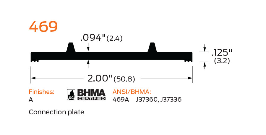 Zero 469A 24" Connection Plate for Adjustable thresholds , 2"W x .125"H, 24" Length, Mill Finish Aluminum