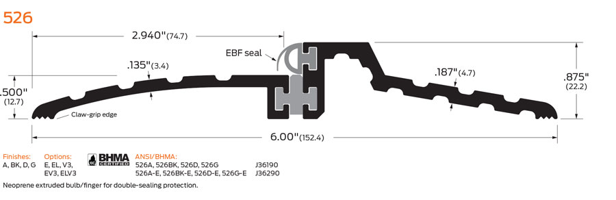 Zero 526G 90" Thermal break threshold with PVC Break and Neoprene Insert, 6"W x .875"H, 90" Length, Gold Anodized Aluminum