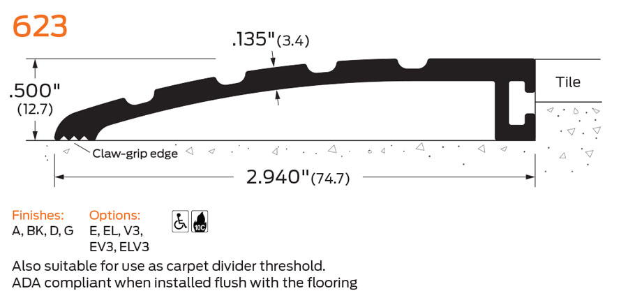Zero 623G 38" Half-Saddle Threshold , 2.940"W x 1/2"H, 38" Length, Gold Anodized Aluminum