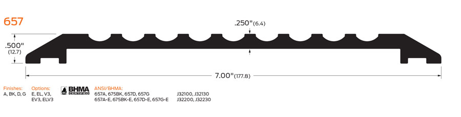 Zero 657G 54" Saddle Threshold without supporting legs, 7"W x 1/2"H, 54" Length, Gold Anodized Aluminum